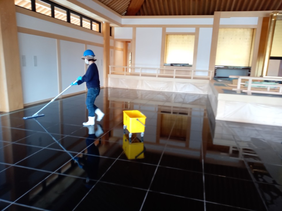 新築の本堂内の床が滑ることが気になり、防滑施工を依頼されました。事故が起きる前の対策としての依頼ですが大変すばらしいと思います。